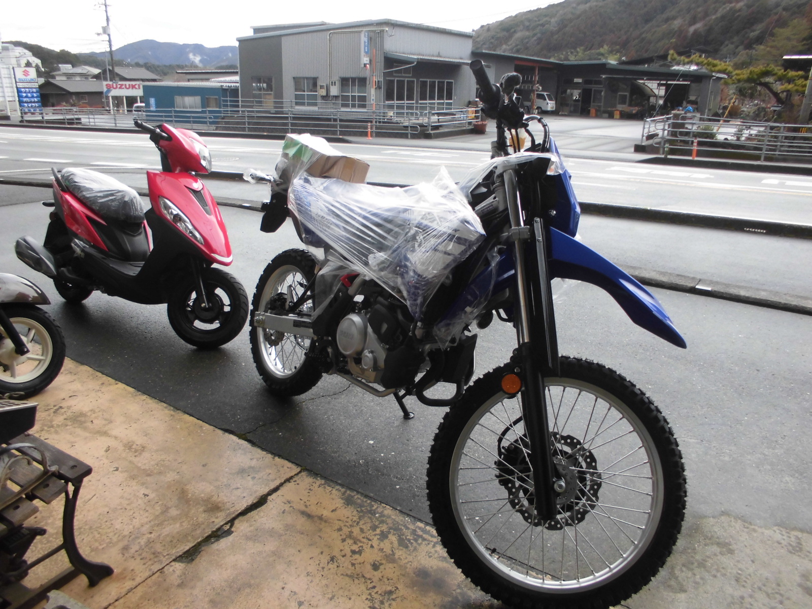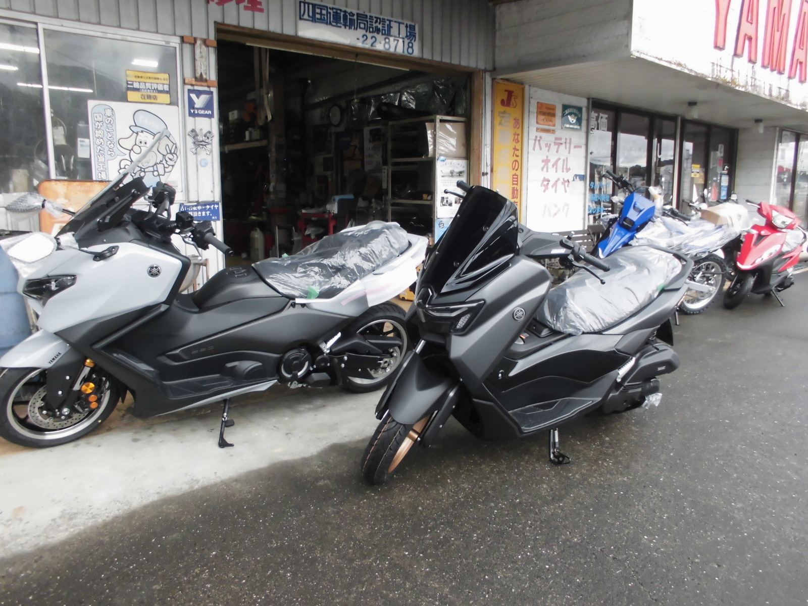 「新車4台」 うちでは珍しく、新車が一気に4台入荷しました お客様注文分の ・TMAX560 TECH MAX ・NMAX155 ・JOG125 店頭在庫分の ・WR125R です。 WR125Rは、ヤマハでは国内で久しぶりに発売されたナンバー付きオフロードバイクです ぜひ現社をご確認ください。 海外では販売されているWR155Rと見比べることもできますよー « 「2026年」